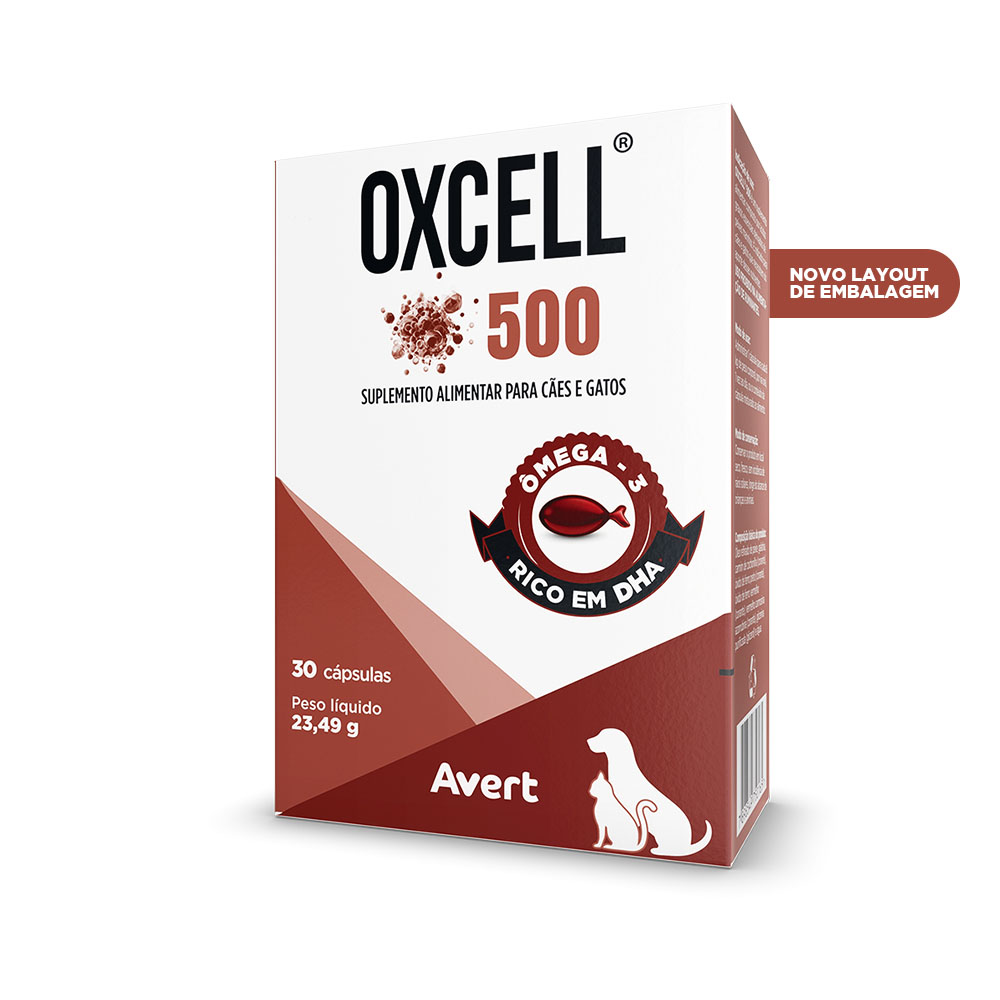 OXCELL® 500 e um suplemento alimentar composto por acidos graxos essenciais derivados de peixes marinhos. E indicado para caes e gatos que necessitem do aporte desses nutrientes.
