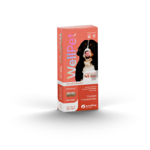 WellPet e um comprimido altamente palatavel a base de Fluralaner com acao antiparasitaria, apresenta potente acao contra carrapatos e pulgas.